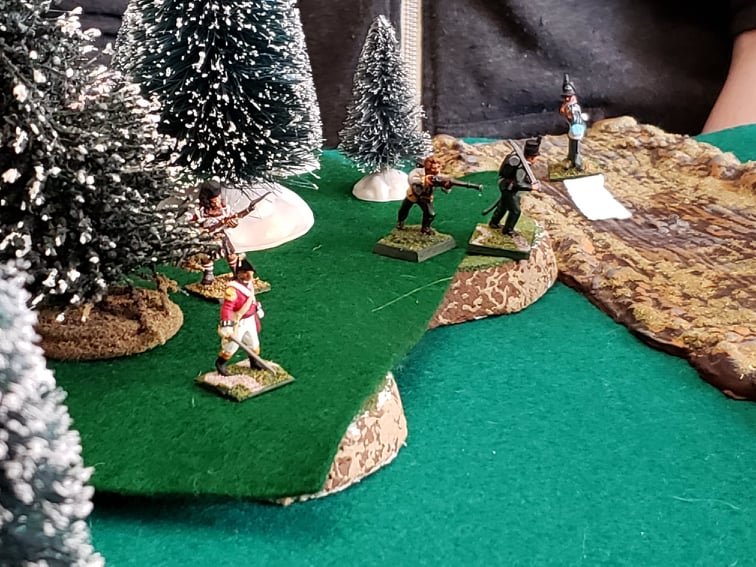 Since my family and I have lots of troops for skirmish gaming of the War of 1812, we took that path. I have Austrians on my painting table, but that will take some time to finish. My son saw the rules, inhaled them, and wanted to try them out. So on Boxing Day, we put together four teams for The Silver Bayonet.